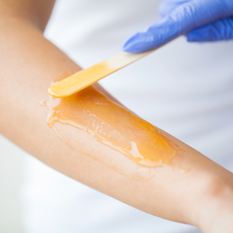 For nose waxing, a gentle hard wax is used because it adheres to the hair without sticking aggressively to the skin. This type of wax is more suitable for sensitive areas.